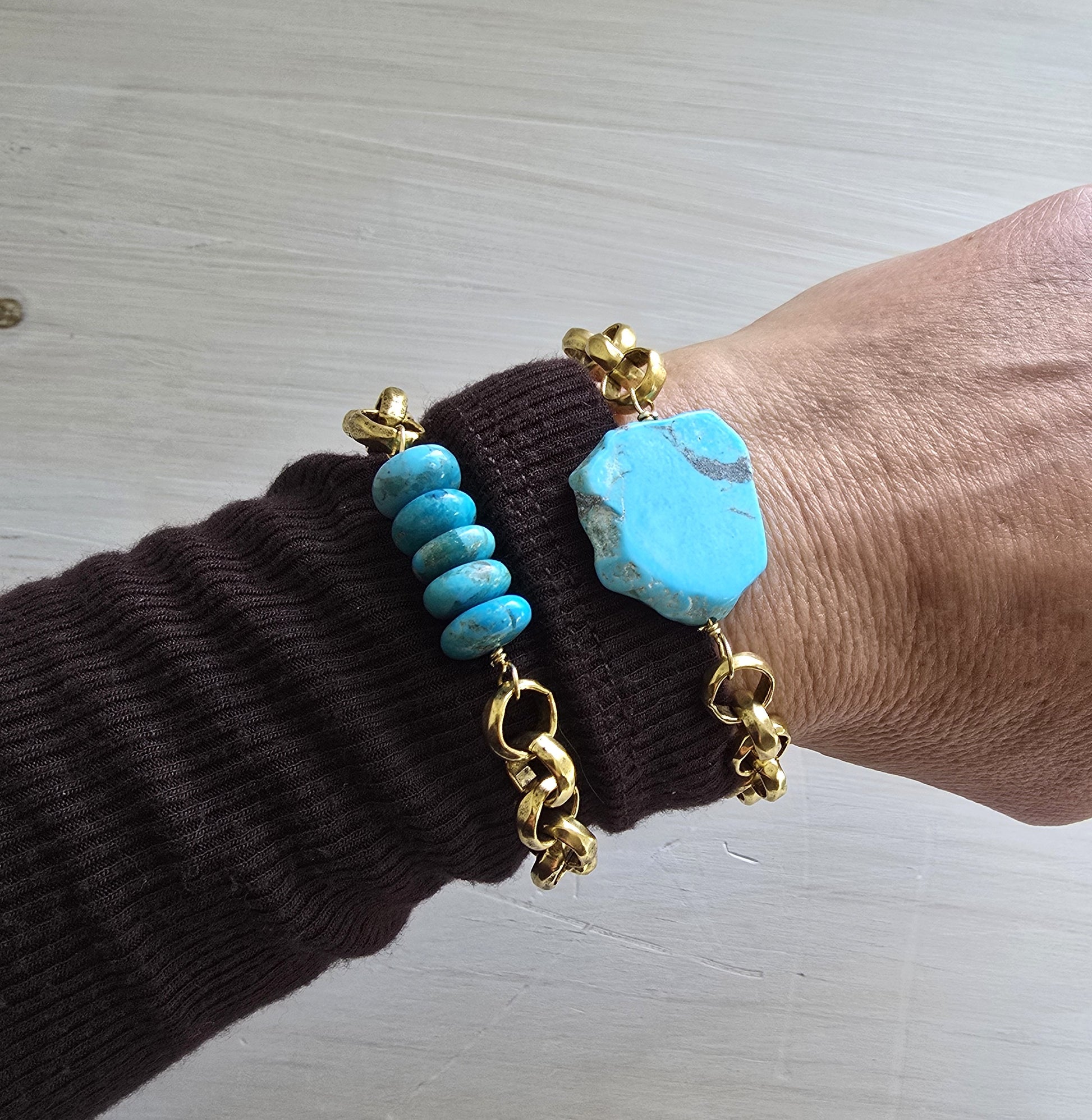 Cheyenne - Rolo Link & Turquoise Slab Bracelet