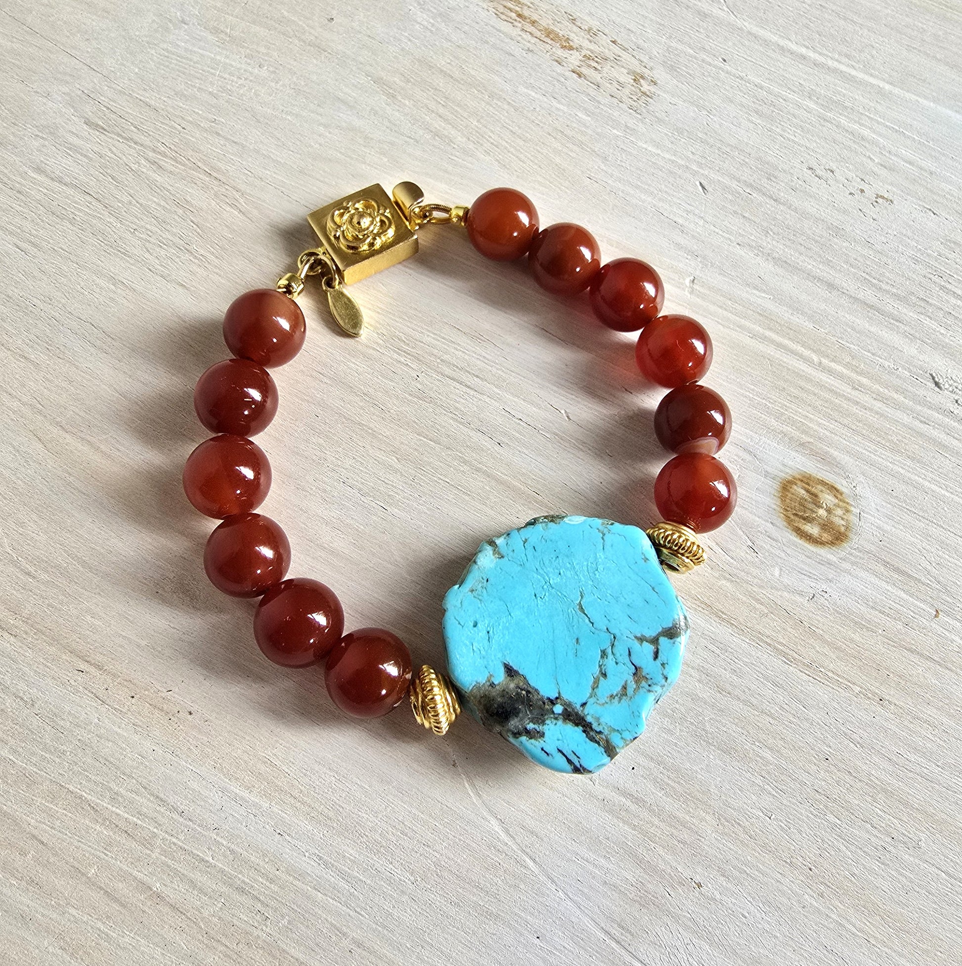 Genuine Carnelian beads and a Kingman turquoise slab center