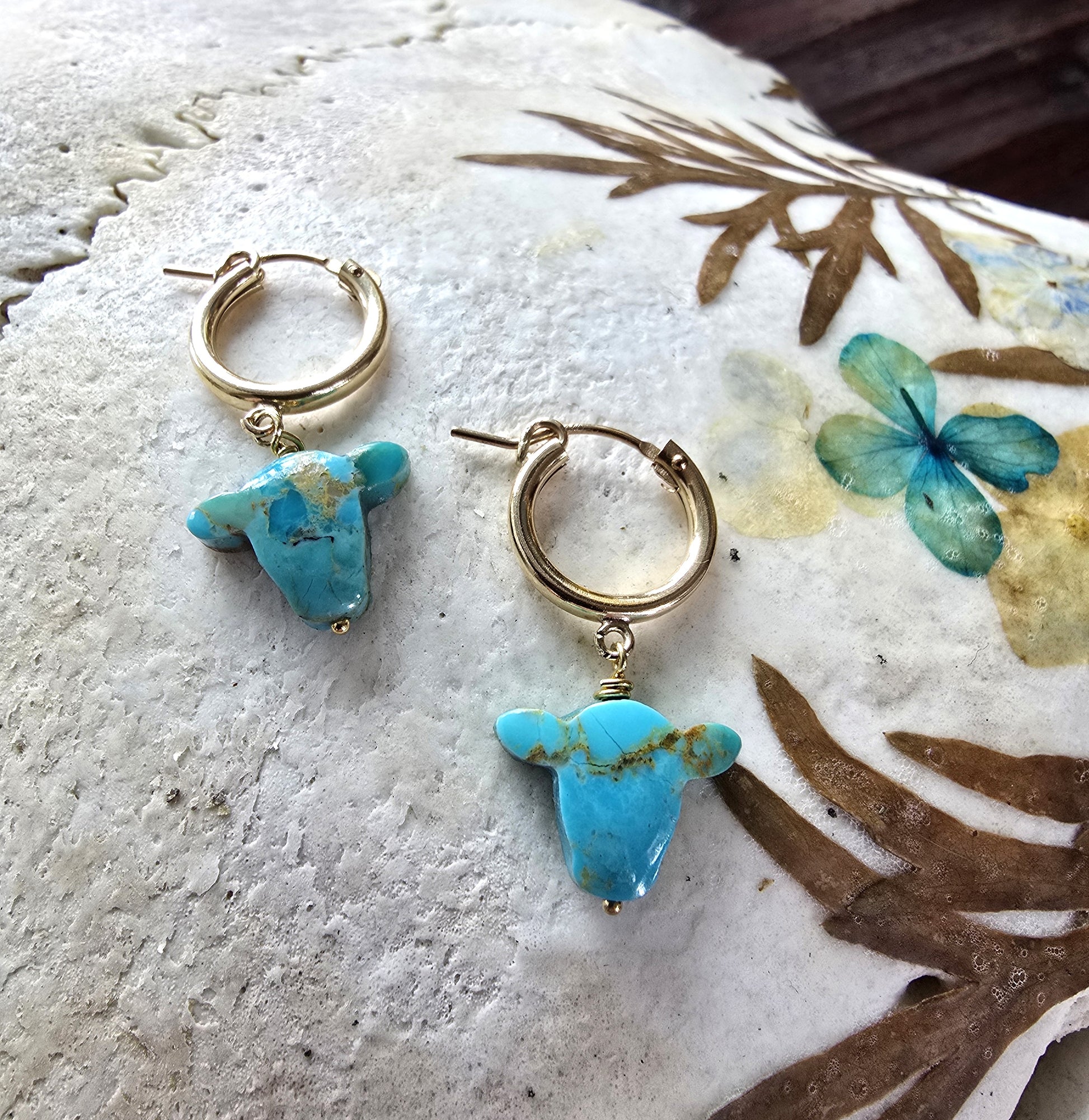 These adorable carved Kingman turquoise buffalo earrings will add a touch of quirkiness to your outfit!